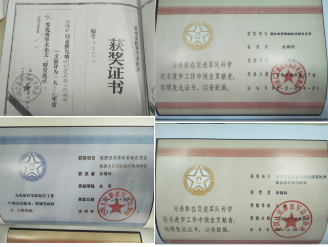 学术及科研成果:撰写学术论文被各类杂志刊用60余篇;开展新技术、新项目、新疗法50余项;获得军队科技成果进步奖三等奖5项;周向喉异物钳等获国家发明专利3项;参编《现代喉部疾病诊断与治疗》1部。周向喉异物钳的研制与应用,获军队科技进步三等奖;豚鼠耳蜗组织学观察和诱导豚鼠老年性聋模型实验研究,获军队科技进步三等奖;海训中耳炎防护研究,获军队科技进步三等奖;不同种类耳塞对炮兵爆震性声损伤防护作用研究,获军队科技进步三等奖;组胺及其受体系统在变应性鼻炎发病机制中作用研究,获军队医疗成果三等奖。
